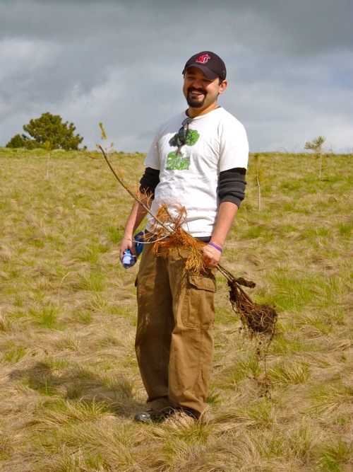 And what will the trees that the students planted look like in just a few years? In the photo below, Erim Gomez, stands next to some ponderosa pine trees that were planted in the arboretum about seven years ago. With this perspective in mind, it is easy to imagine that the upper windswept slope of the arboretum will transformed into a respectable looking, western landscape in relatively short order thanks to the tough nature and rugged beauty of the ponderosa pines.