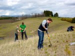 The WSU Arboretum and Wildlife Conservation Center is in its infancy, so we appreciate the help of volunteers who donate their time to work on landscape development projects with us. The morning hours were cold and windy, and given that the upper and central part of the arboretum currently consists of wide open fields and valley slopes, we worried that the afternoon would be rather brisk when people showed up for the joint Earth Day / Arbor Day event.